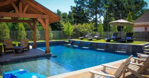 - إذا كانت مساحة الحديقة تسمح يمكنك أن تبني حمام سباحة في مساحة من الحديقة.