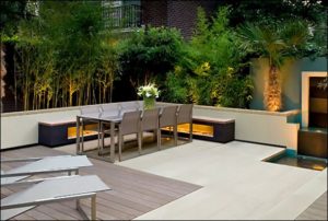 و ارتفاع المبنى، و تصميم وطراز المبني ولون المبنى، وهذا يساعد في تناسق وتوازن تصميم الحديقة.